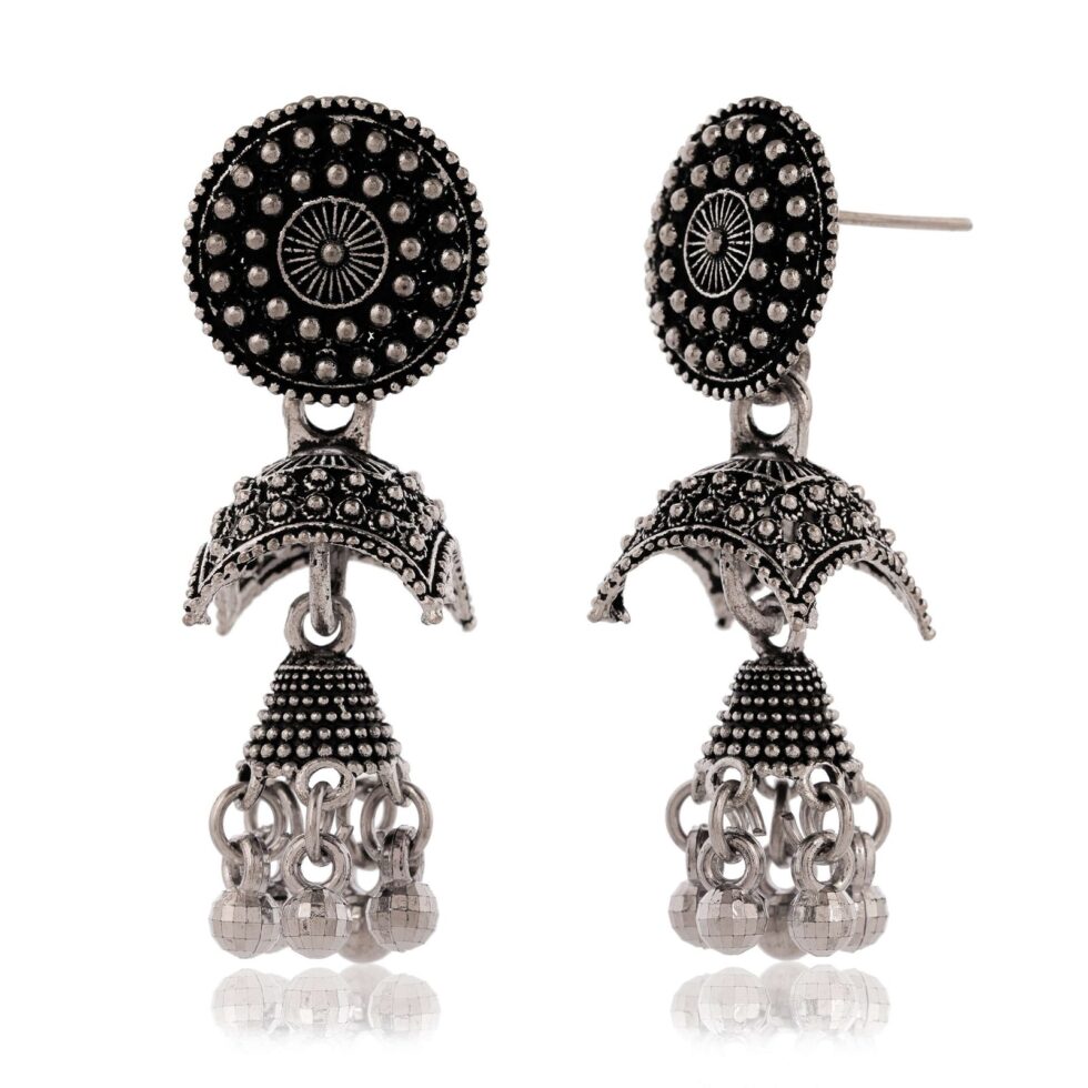 Women Traditional Silver AZ838-OXidised Jhumka Set | German Silver Chand Baliyan & Jhumkas Earrings for Women | Birthday & Anniversary Gift -AZ838-OX-ER51